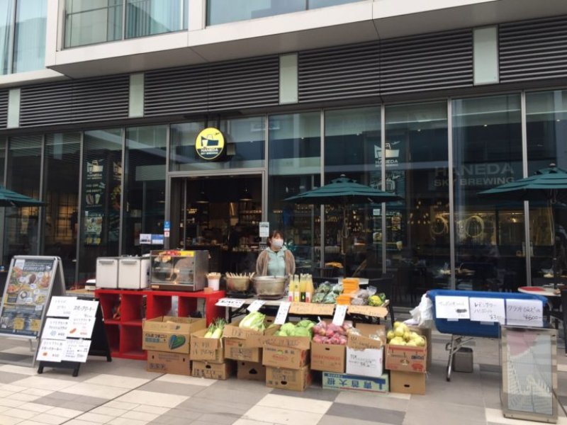 近くでは羽田バルが店の前にワゴンを出しており、野菜や軽食のテイクアウト販売を行っていました。