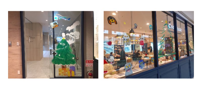 店舗の外には可愛らしいステンドグラスシールのような装飾で賑やか!どれも素敵!