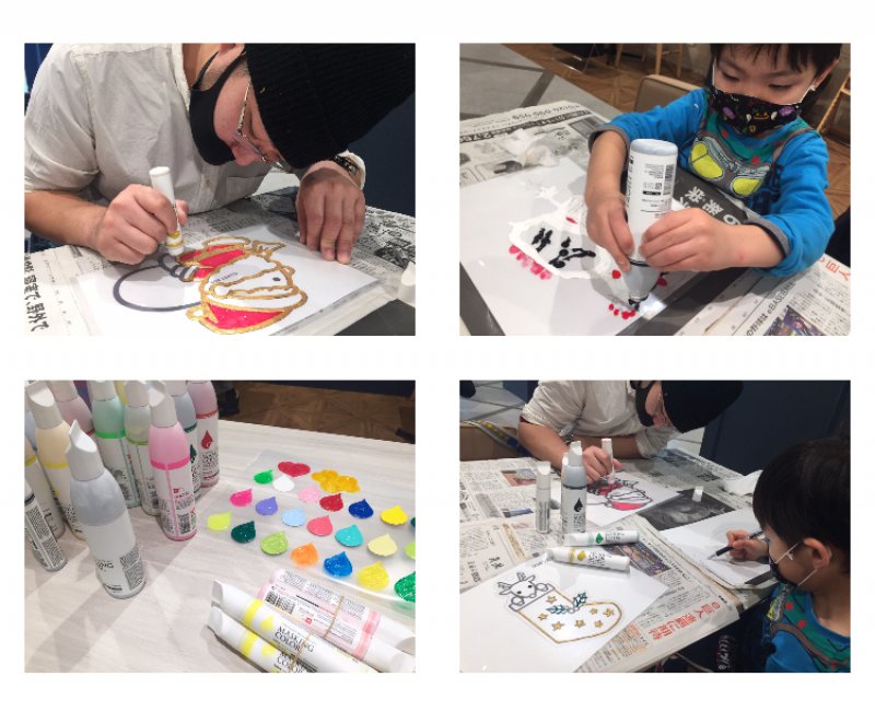 クリアファイルの上にマスキングカラーという水性塗料で絵を描いていきます。