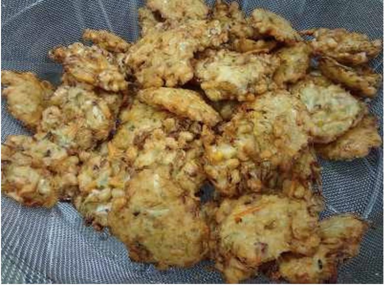 たこ、ねぎ、キャベツ、コーン、小麦粉などを混ぜたものを油で揚げたものに、ソースと鰹節をかけたら完成! 具材や見た目は、各小・中学校によって違うようですが、文字通り、たこ焼きをぺったんこにしたものと考えるとわかりやすいかと思います。